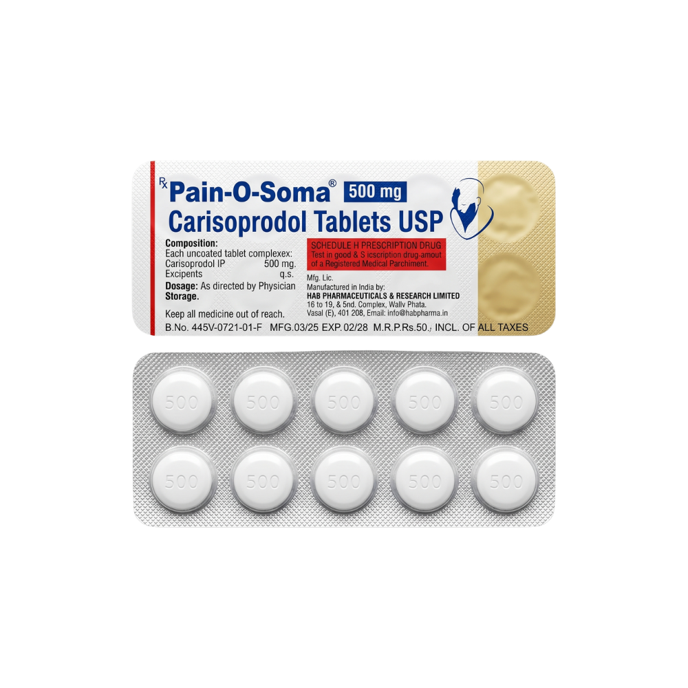Carisoprodol tablets marketed under the brand name Pain-O-Soma 500 mg are commonly prescribed for the short-term relief of acute musculoskeletal pain and discomfort.